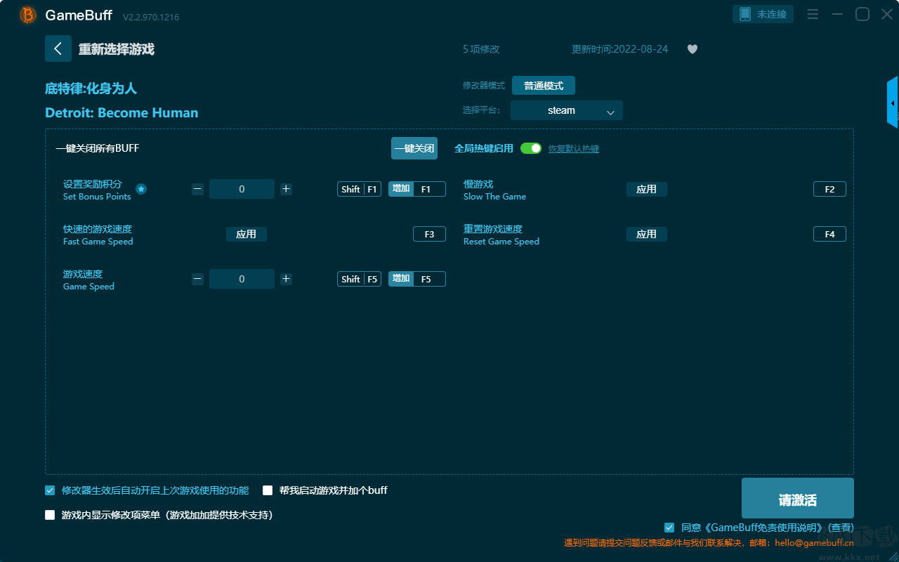 底特律化身為人五項修改器pc最新版是一款專為各類游戲打造的綜合性修改工具,集成上千款熱門游戲的修改功能。無需復雜的操作,輕輕一點就能讓游戲難度瞬間降低,助你體驗無敵的快樂。你可為這款游戲一鍵開啟,設(shè)置獎勵積分、慢游戲、快速的游戲速度、重置游戲速度、游戲速度等修改功能??靵鞬K下載站下載體驗吧。