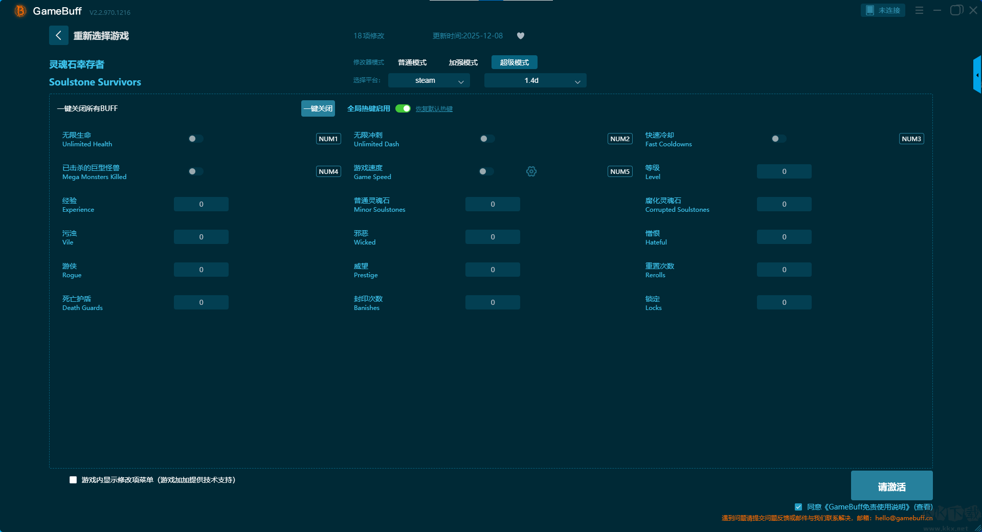 靈魂石幸存者二十六項修改器pc官方版超級模式 (支持18項修改,不支持聯(lián)網(wǎng)模式)