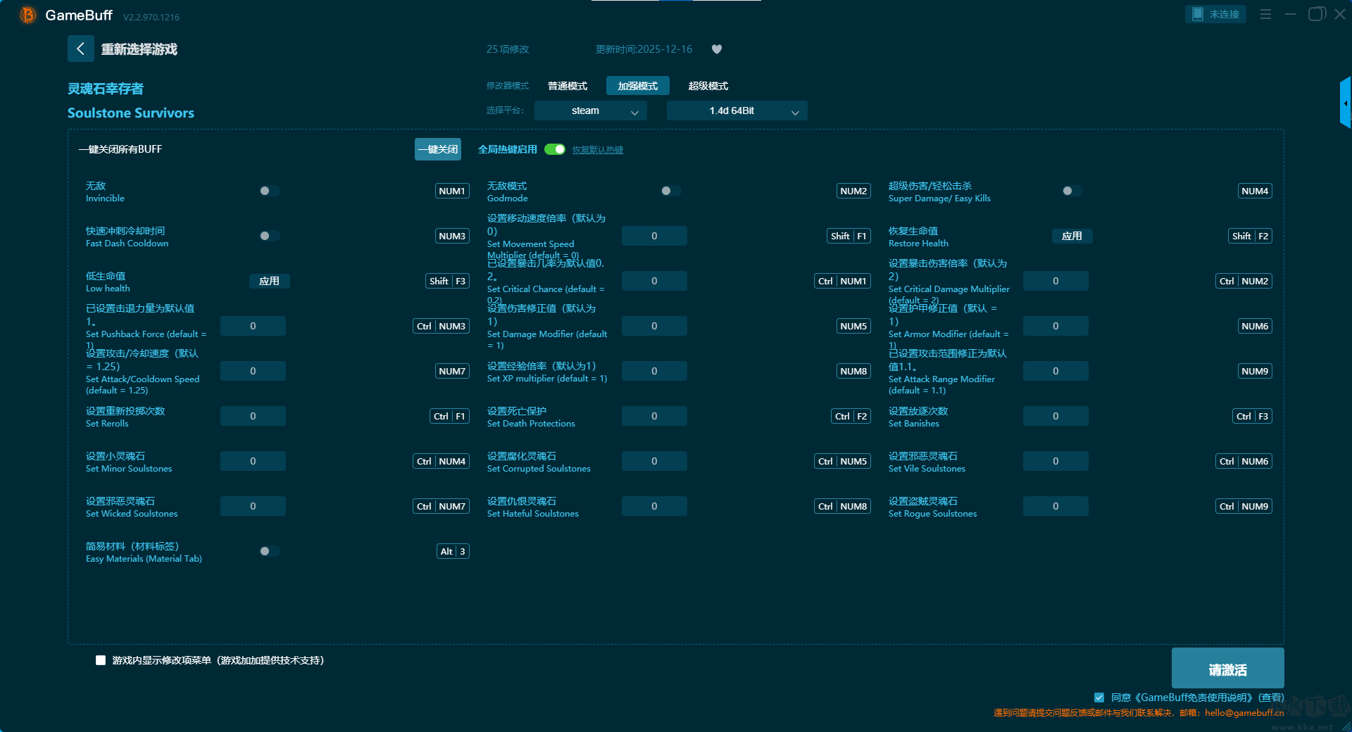 靈魂石幸存者二十六項修改器pc官方版加強模式 (支持25項修改,不支持聯(lián)網(wǎng)模式)