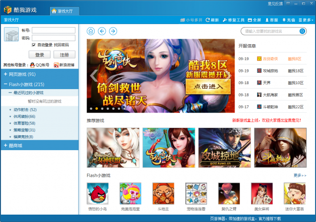 酷我游戲盒是酷我推出的一款游戲盒子軟件,里面有豐富的游戲,包括了網(wǎng)絡(luò)游戲、單機(jī)游戲、網(wǎng)頁游戲等等,還有小號(hào)多開、靜音、游戲修復(fù)、全屏設(shè)置等特色功能,是玩家玩游戲的最佳助手。