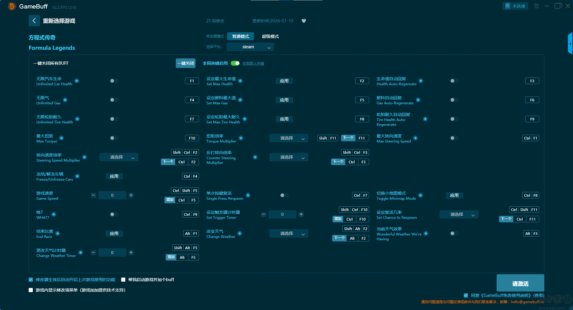 方程式傳奇二十五項修改器pc正版是一個集成了海量預設腳本與自定義功能的綜合性輔助平臺,通過科技的力量,為你打破游戲內(nèi)的數(shù)值枷鎖,還原探索與創(chuàng)造的樂趣。你可在游戲方程式傳奇中一鍵開啟,無限汽車生命、無限氣、無限輪胎耐久、最大扭矩、扭矩倍率、最大轉(zhuǎn)向速度、轉(zhuǎn)向速度倍率、反打轉(zhuǎn)向倍率等超多修改功能。快來下載體驗一下吧。