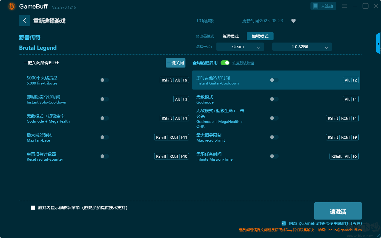野獸傳奇八項修改器pc國際版是一款專為PC單機(jī)游戲設(shè)計的多功能輔助工具,致力于為玩家提供更自由、更便捷的游戲體驗。你可以為游戲野獸傳奇一鍵開啟,無限生命、鎖定任務(wù)時間、無限金錢、一擊必殺、即時單位招募、沒有吉他過熱、無限粉絲、無招募限制等超多修改功能。需要的小后半快來KK下載站下載體驗吧。