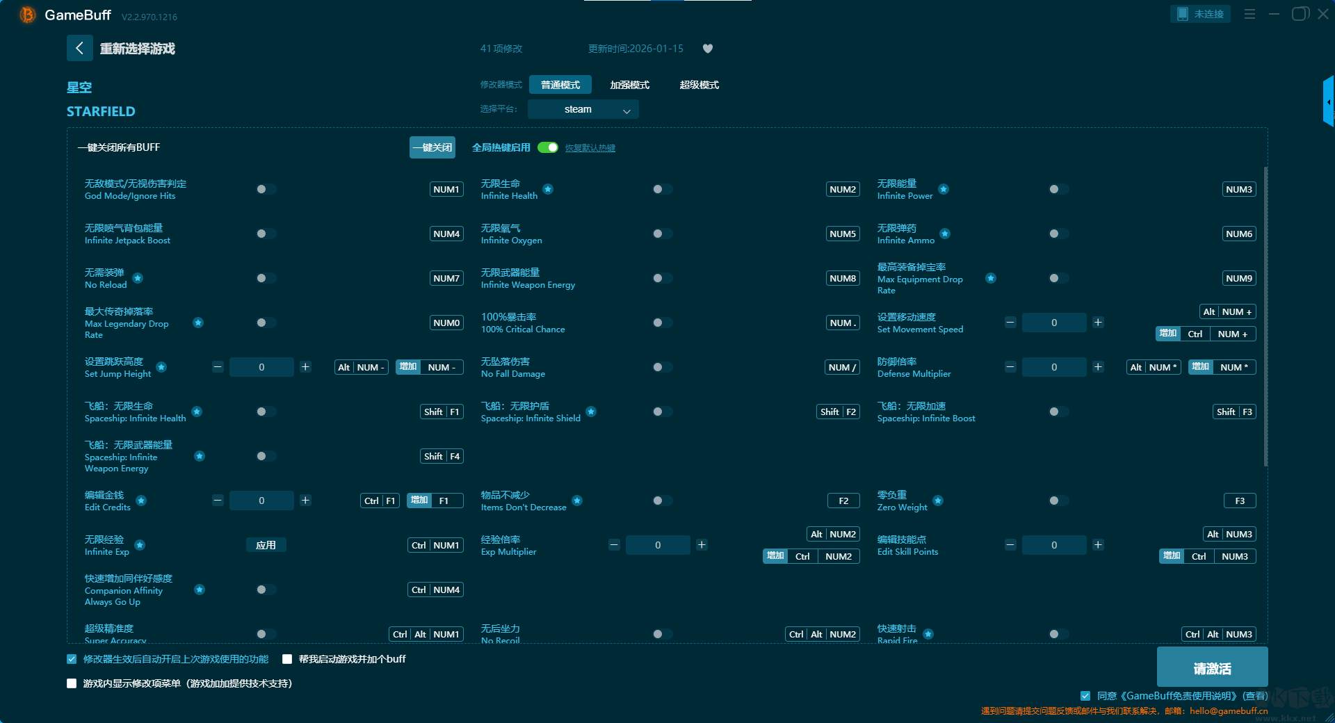 星空四十一項修改器pc最新版普通模式修改功能介紹