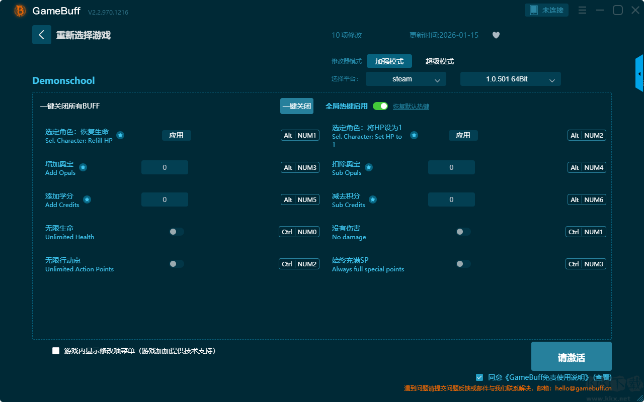 惡魔學(xué)院十項(xiàng)修改器pc正版是一款專為安卓平臺(tái)設(shè)計(jì)的游戲輔助軟件,旨在為玩家提供便捷的游戲參數(shù)調(diào)整與操作優(yōu)化功能。你可為游戲惡魔學(xué)院一鍵開啟,增加奧寶、添加學(xué)分、無限生命、無限行動(dòng)點(diǎn)、扣除奧寶、減去積分、沒有傷害、始終充滿 SP等超多項(xiàng)的修改功能。喜歡這款修改器的小伙伴快來KK下載站下載體驗(yàn)吧。