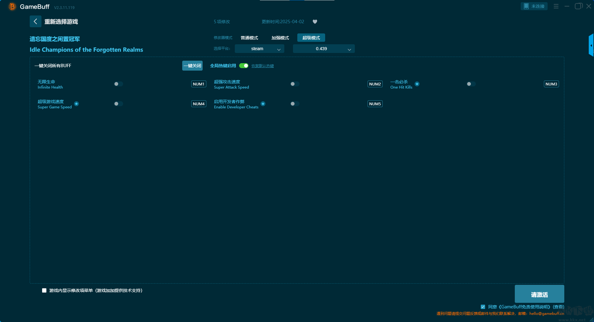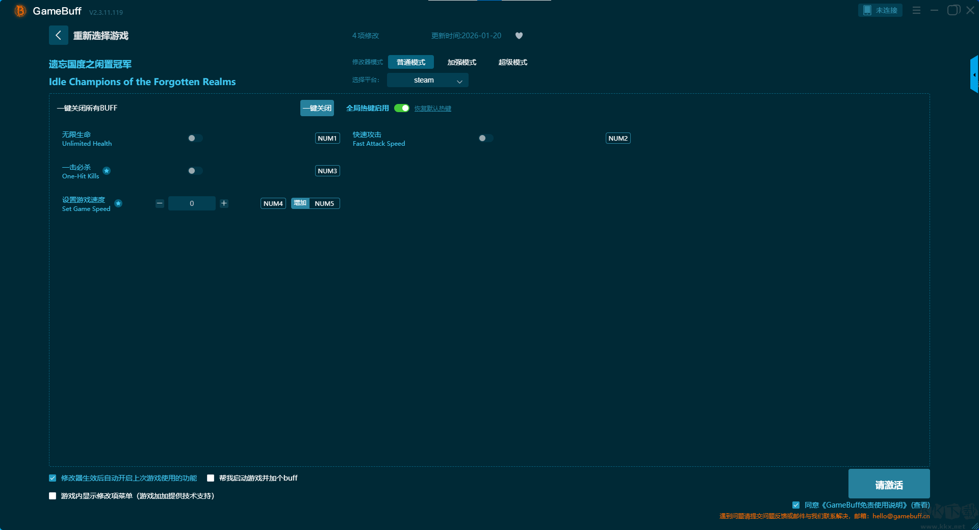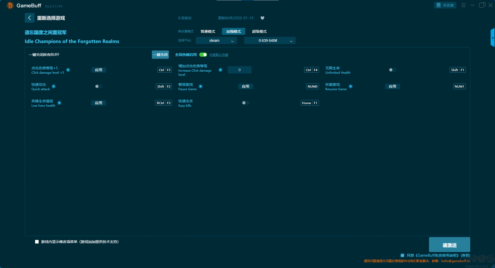 遺忘國度之閑置冠軍四項修改器pc單機版是一款集成了游戲加速、參數(shù)修改、系統(tǒng)優(yōu)化及社區(qū)互動等核心功能,為玩家打造一個流暢、自由且充滿樂趣的游戲環(huán)境。玩家可在這款修改器中為游戲遺忘國度之閑置冠軍一鍵開啟,點擊傷害等級+5、快速攻擊、英雄生命值低、增加點擊傷害等級、暫停游戲、快速擊殺、無限生命、恢復(fù)游戲等超多修改功能。快來KK下載站下載試試吧。