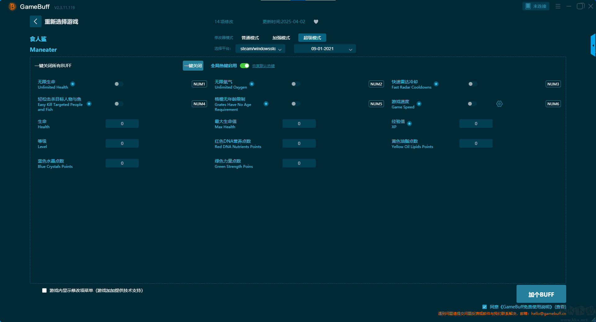 食人鯊二十項(xiàng)修改器pc最新版超級(jí)模式修改功能介紹