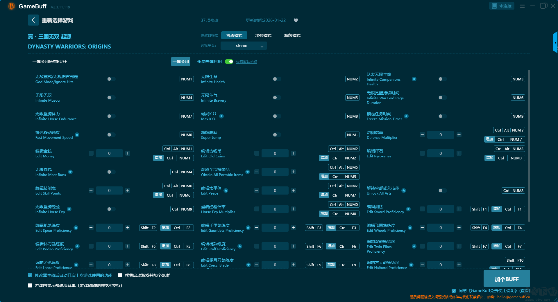真三國(guó)無(wú)雙起源三十七項(xiàng)修改器pc最終版普通模式修改功能介紹