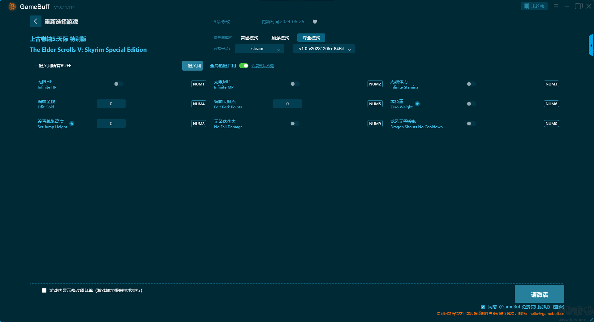 上古卷軸5天際特別版十二項(xiàng)修改器pc專業(yè)版專業(yè)模式修改功能介紹
