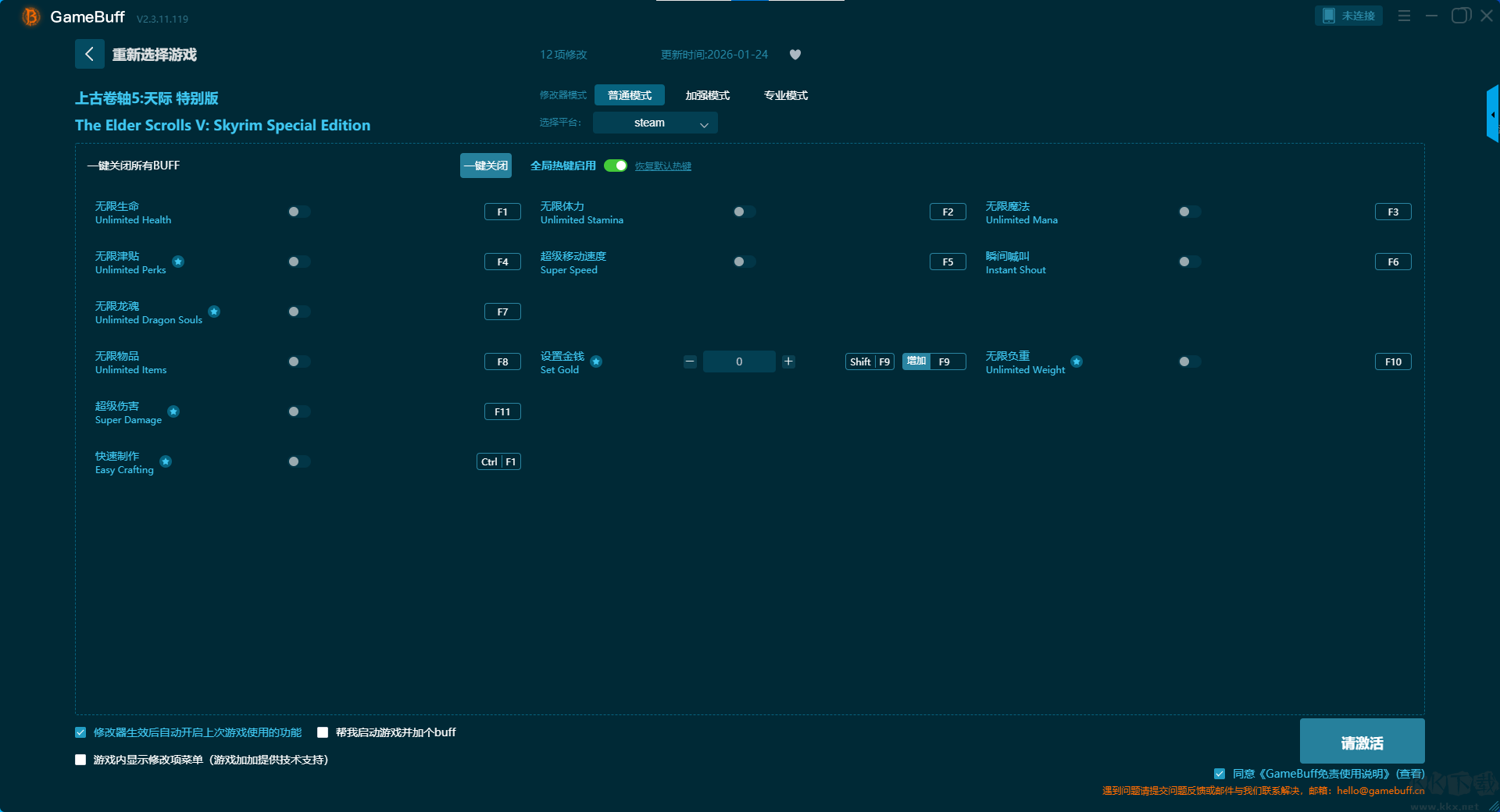 上古卷軸5天際特別版十二項(xiàng)修改器pc專業(yè)版普通模式修改功能介紹