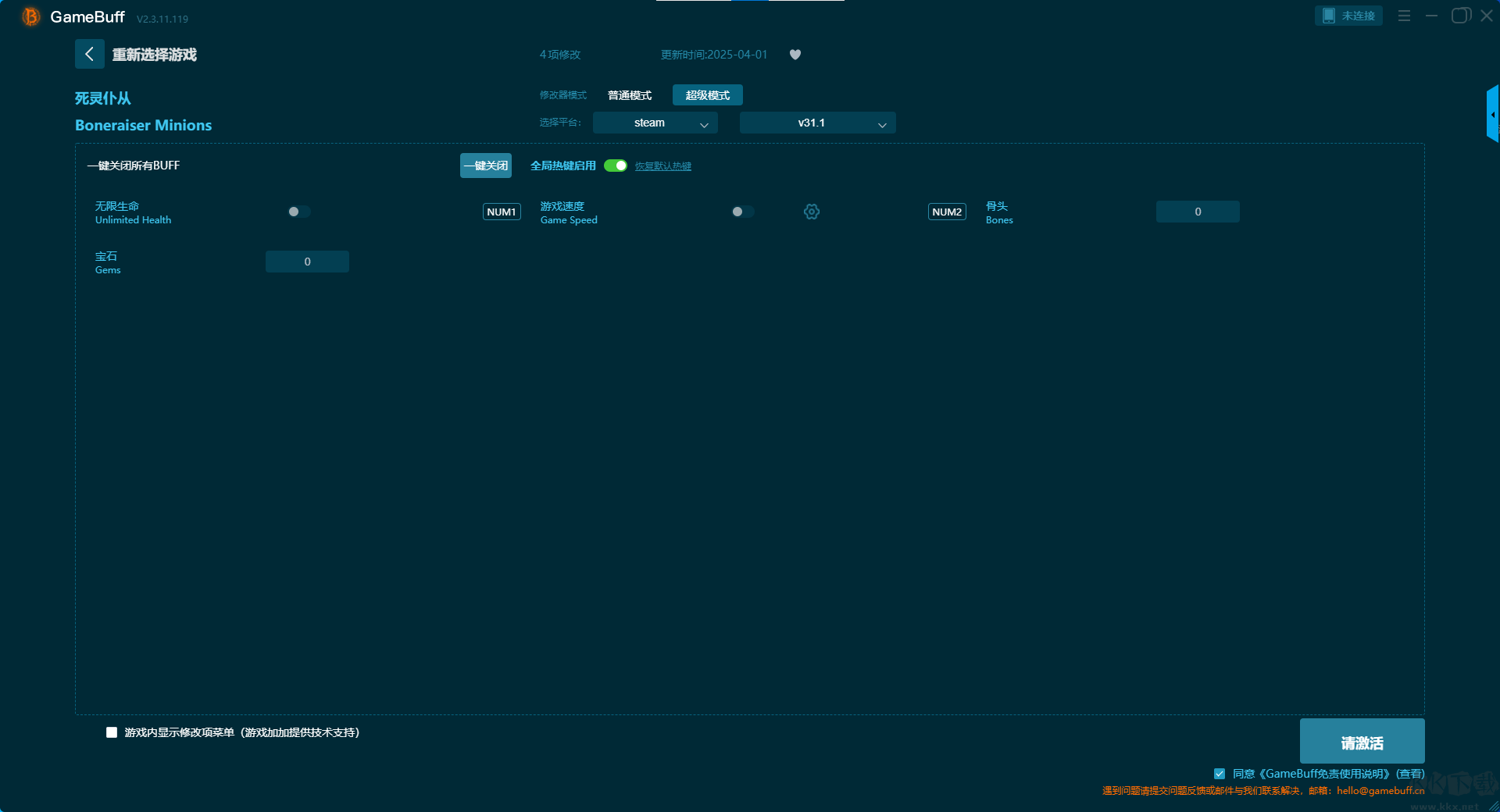 死靈仆從九項(xiàng)修改器pc單機(jī)版超級(jí)模式修改功能介紹