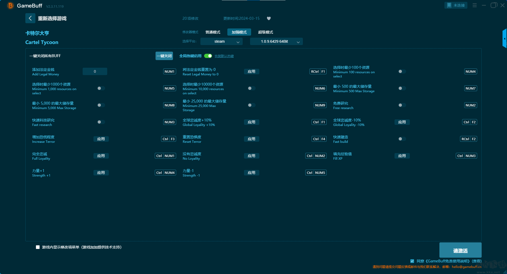卡特爾大亨九項(xiàng)修改器pc最終版加強(qiáng)模式修改功能介紹