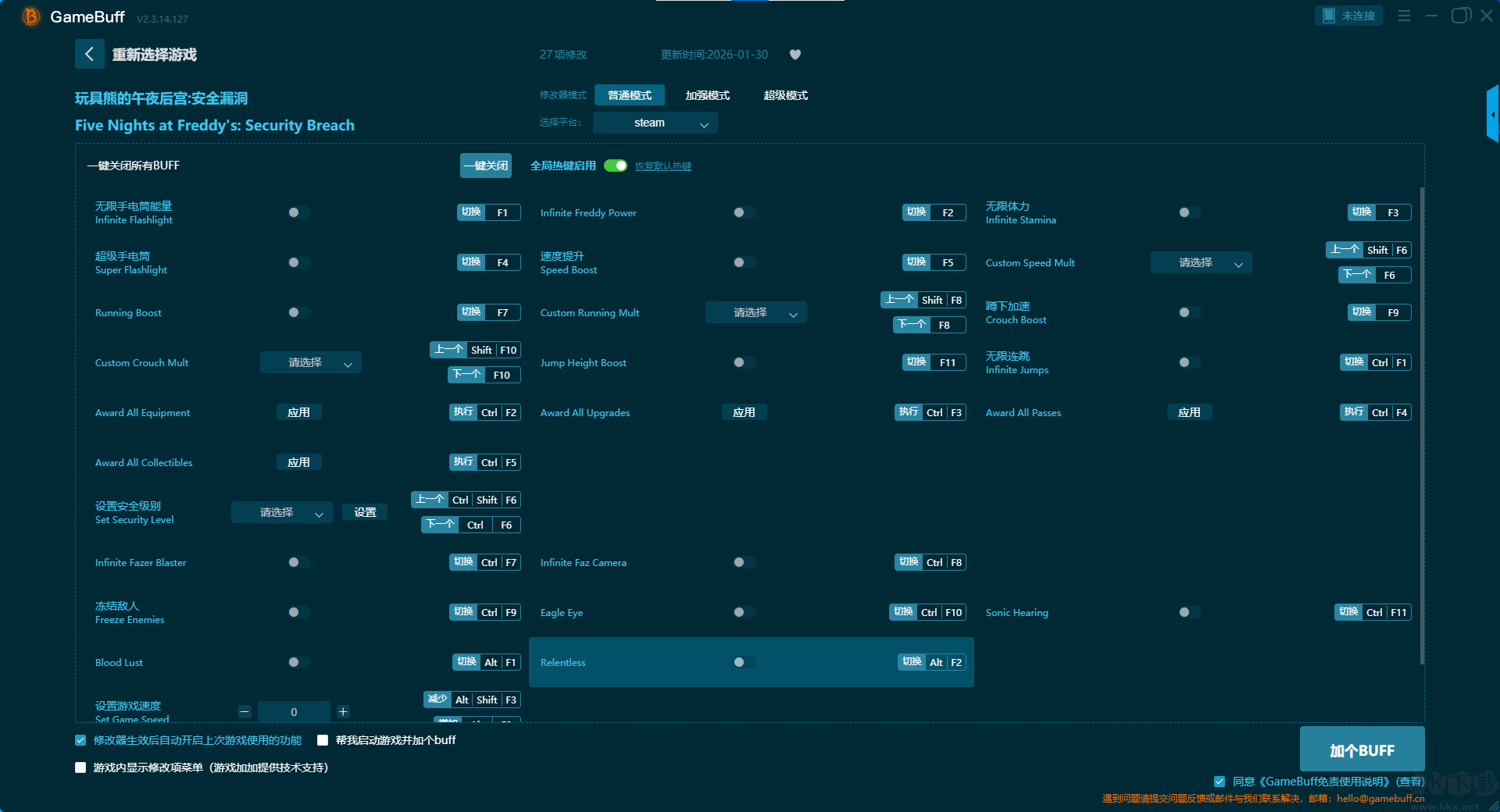 玩具熊的午夜后宮安全漏洞27項修改器pc正版加強模式修改功能介紹