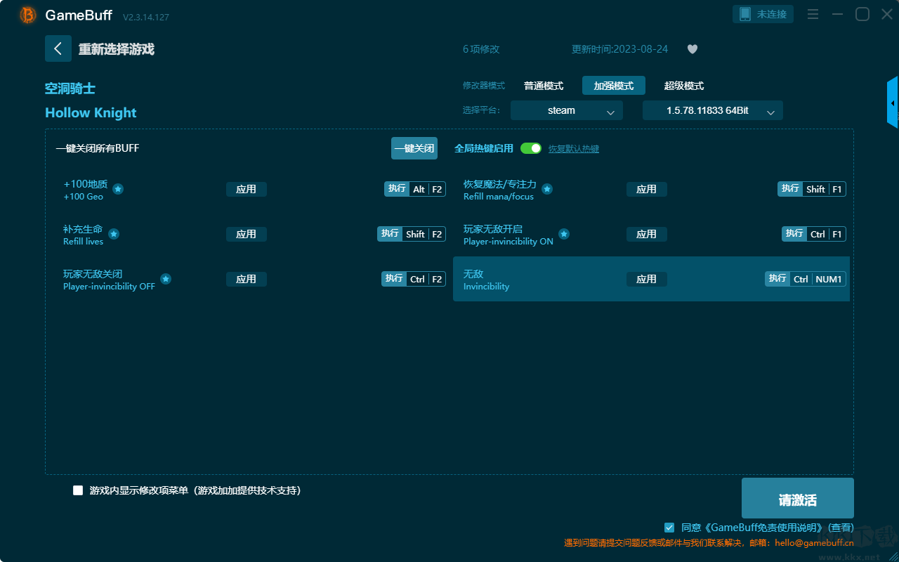空洞騎士四項修改器pc綠色版加強模式修改功能介紹
