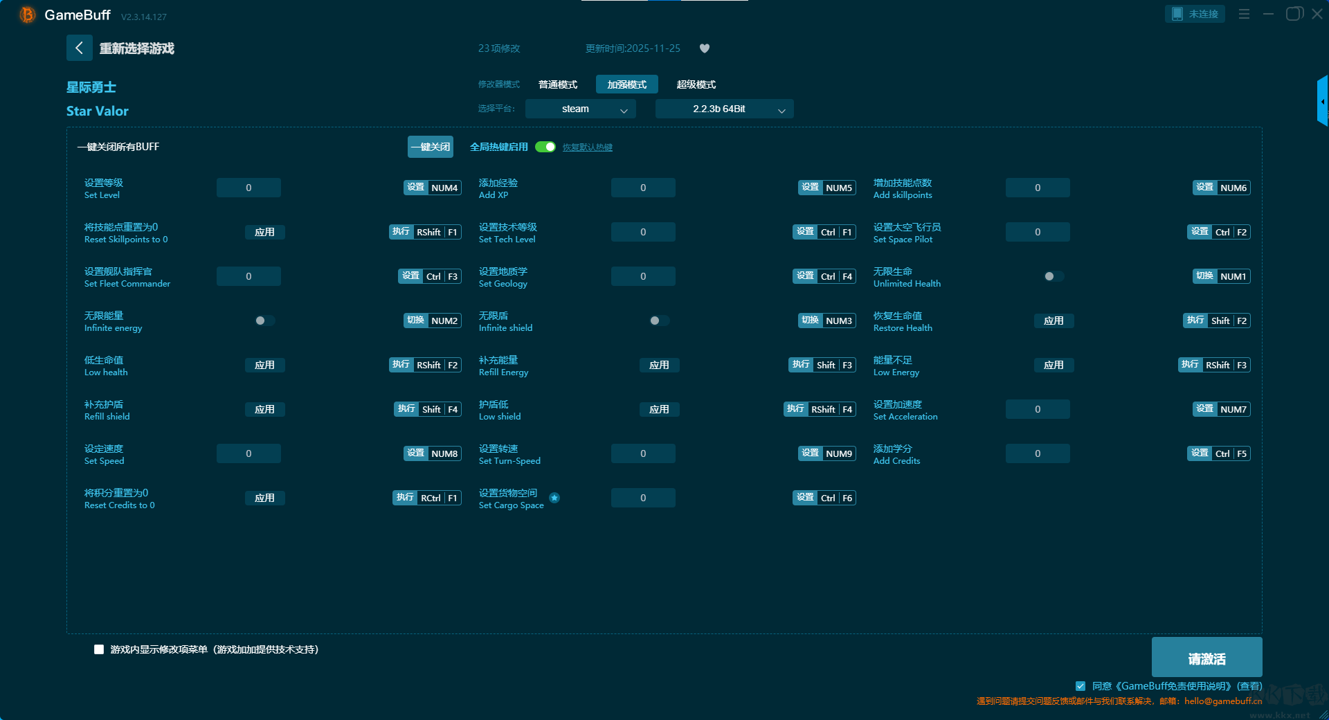 星際勇士七項修改器pc官方版加強模式修改功能介紹