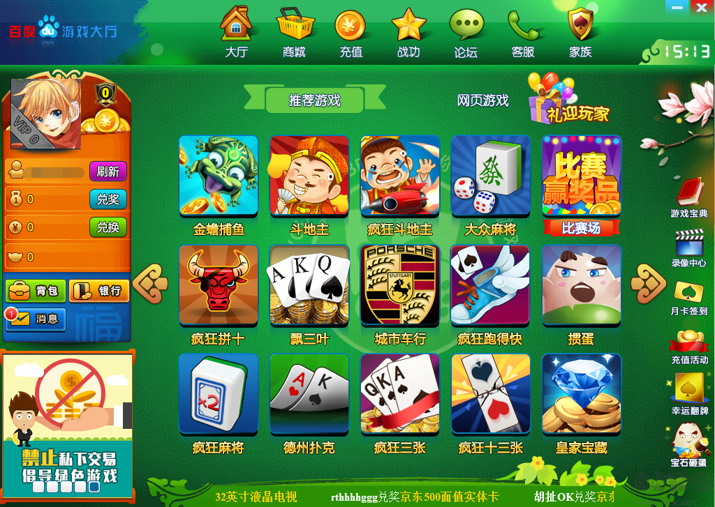 百度游戲大廳為廣大游戲愛好者提供了豐富的游戲,包括棋牌游戲、網(wǎng)頁游戲,其中還有棋牌比賽”、“休閑競技”、“角色扮演”、“模擬經(jīng)營”等多種游戲組合,讓大家在空閑時間有更好的休閑! 是不少用戶喜歡的一款游戲中心。