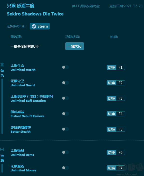 只狼修改器提供《只狼影逝二度》游戲玩家們十一項游戲?qū)傩孕薷墓δ?。能夠讓你在游戲中變成無敵,想怎么玩就怎么玩~什么無限生命、無限金錢都是毛毛雨,還能夠敞開超級速度、超級跳,無限提升戰(zhàn)力!感興趣的朋友不要錯過,KK下載站推薦大家下載體驗!