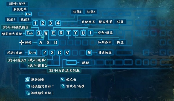 戰(zhàn)斗中使用WASD進(jìn)行移動,鼠標(biāo)左、右鍵分別進(jìn)行輕、重攻擊。