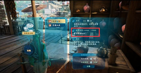 進(jìn)餐可以在30分鐘之內(nèi)獲得增益buff,不同菜品有不同的效果,具體在右側(cè)的說明里進(jìn)行查看。