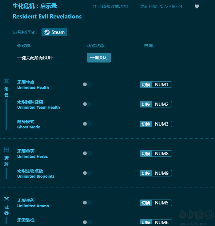 生化危機(jī):啟示錄修改器是一款專為游戲《生化危機(jī):啟示錄》開發(fā)的游戲修改器。內(nèi)置十三項強(qiáng)力游戲輔助,包括無限生命,無限團(tuán)隊健康,無限草藥,無限生物點數(shù),無限彈藥,隱身模式等等輔助功能,幫助玩家冒險更精彩愉快,游戲更爽快!感興趣的朋友不要錯過,KK下載站推薦大家下載體驗!