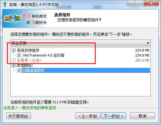 3、選擇安裝路徑,注意要安裝組件,否則游戲運(yùn)行不起來;