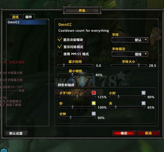 5、如果你在安裝插件后發(fā)現(xiàn)閃光冷卻提示不能正常顯 示,可以在聊天框輸入:“/run OmniCC.sets.minFinishEffectDuration=1”或者直接調(diào)整選項里面的尺寸閥值。