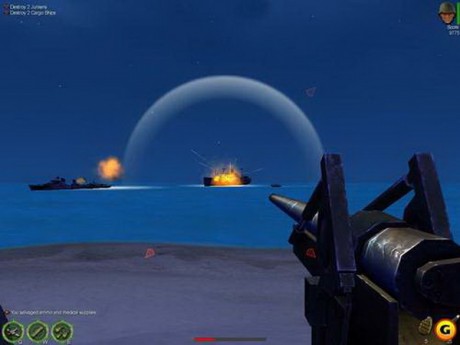 搶灘登陸戰(zhàn)2012玩家控制的是畫面近端的一個(gè)自由炮臺(tái),目的是防止敵方軍隊(duì)登陸到海岸上。移動(dòng)鼠標(biāo)可以控制畫面上的準(zhǔn)星,按下左鍵即為開火,玩家需要面對(duì)的,是地方的聯(lián)合作戰(zhàn)單位,包括空中的戰(zhàn)斗機(jī),地面的戰(zhàn)車,以及蜂擁而至的步兵,在他們到達(dá)奔放炮臺(tái)之前,將其統(tǒng)統(tǒng)消滅即可。