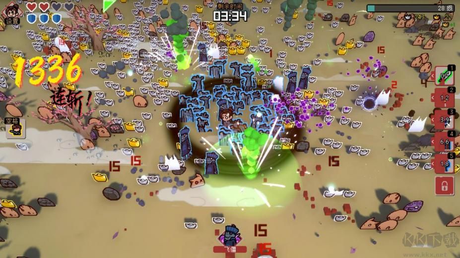精心制作的立體紙片讓游戲變得可愛有趣,普通的小人物獨步通神,滿屏的火球和黑洞,特效越好,傷害越高。