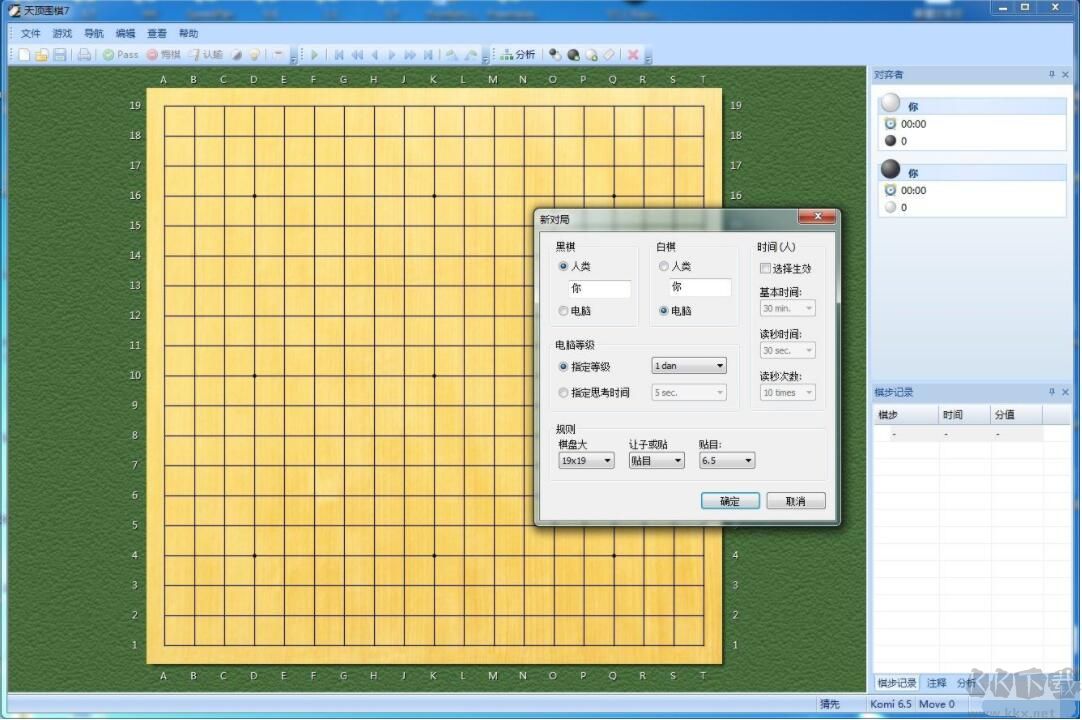 (4)支持多種棋盤大?。?路至19路),可設(shè)置引擎強(qiáng)度、讓子、貼目等,并可保存為自己的默認(rèn)設(shè)置。