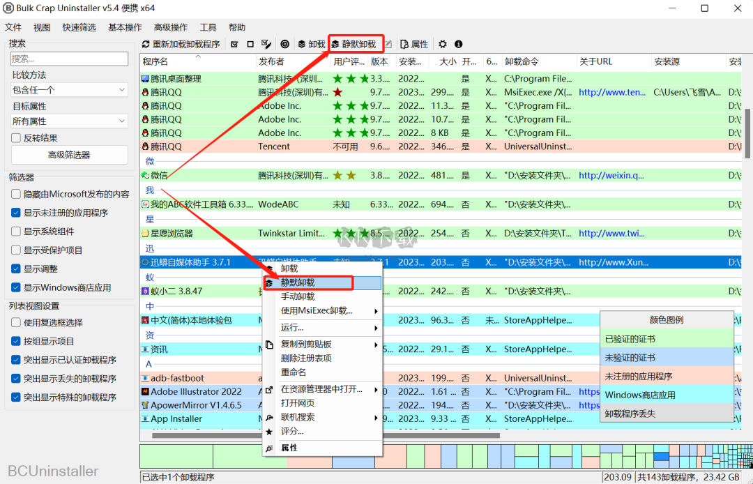 Bulk Crap Uninstaller(也稱為 BCUninstaller)是適用于 Windows 操作系統(tǒng)的免費開源程序卸載程序。它是一個功能強大的程序,能夠檢測和刪除孤立的應用程序、清理剩余程序、過濾程序類型(例如屬于 Microsoft 的程序類型)等等。