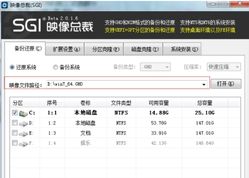 1、SGI支持GHO和WIM的備份和還原。