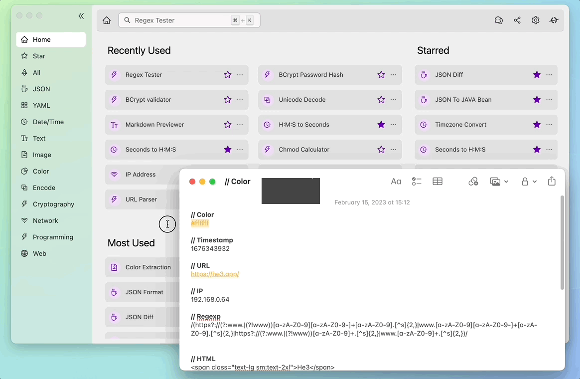 豐富的工具集合:He3內(nèi)置超過(guò)400種實(shí)用工具,涵蓋各個(gè)方面的開(kāi)發(fā)需求。