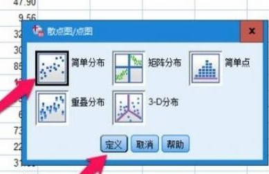 3、選擇【簡(jiǎn)單分布】,并點(diǎn)擊【定義】,這種散點(diǎn)圖是我們常見(jiàn)的,而其他幾種都比較復(fù)雜,用到這兒就把簡(jiǎn)單問(wèn)題復(fù)雜化了。