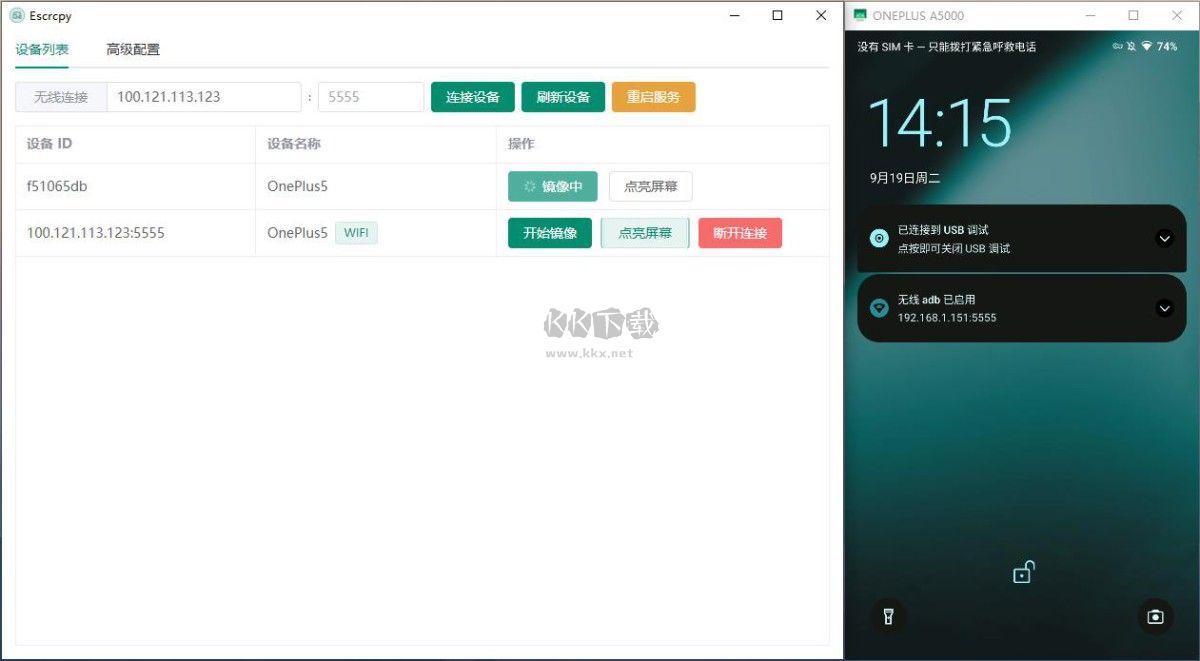 打開 Escrcpy 并將安卓手機連接到你的電腦