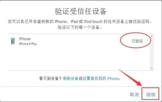 1、點擊【開始使用】之后,系統(tǒng)會提示需要你用您常用的一臺設備驗證它的提示信息,點擊【繼續(xù)】;