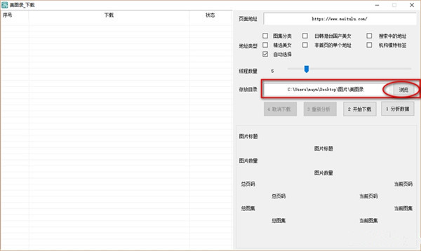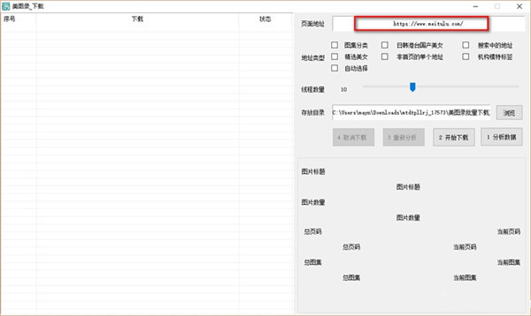 2、在“頁面地址”一欄中輸入需要下載的圖片對應(yīng)的網(wǎng)址(可以直接使用瀏覽器打開美圖錄網(wǎng)站找到需要下載的圖片,然后從瀏覽器的地址欄中復(fù)制)。