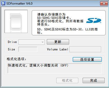 SDFormatter漢化版是一款內(nèi)存卡修復(fù)工具,SD卡修復(fù)工具,它是由松下公司推出的sd卡格式化工具,能夠修復(fù)手機(jī)內(nèi)存卡(SD卡,TF卡,minisd,TK卡,SDHC卡/SDXC卡等),讀不出來,又無法格式化的問題。同時(shí)新卡使用該工具格式化一下也有加快速度的效果,非常知名的一款工具。