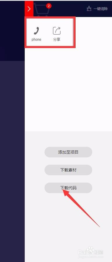 購物車:將圖標加入購物車后,可以批量下載素材和代碼、批量添加至項目