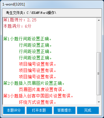 以下是評(píng)分后的情況,拉滾動(dòng)條,可以看到您作答的詳情情況,做對(duì)的用綠色表示,錯(cuò)誤的用紅色表示。