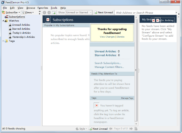2、FeedDemon便攜式允許您添加盡可能多的RSS feed鏈接,只要你想,您還可以手動(dòng)更新它們。