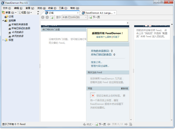 1、一般情況下,安裝FeedDemon默認(rèn)打開(kāi)為英文界面;