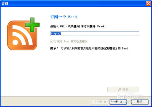在網(wǎng)絡(luò)上找到RSS資源復(fù)制到訂閱欄中,新建訂閱。