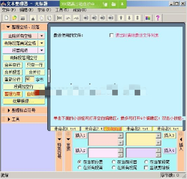 插入功能:文本整理器提供了四個(gè)插入文本框,相當(dāng)于四個(gè)可視化剪貼板,而且多樣化的插入方式使它比剪貼板更好用