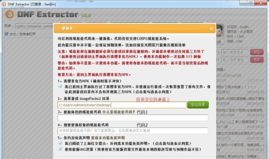 在桌面上創(chuàng)建ImagePacks2文件夾,打開DNF Extractor3.0,點擊一鍵換裝,勾選及設(shè)置如圖