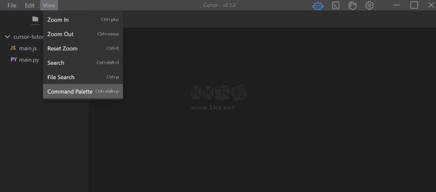 界面上就三個菜單欄:File、Edit、View,然后就是右上角的4圖標(biāo)了。Cursor(AI編程神器)著重關(guān)注一下View菜單下的Command Palette以及右上角的設(shè)置圖標(biāo)。