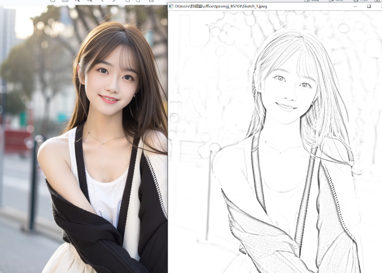 5、軟件轉(zhuǎn)換過程簡單,加載JPG就可以立即輸出素描圖像