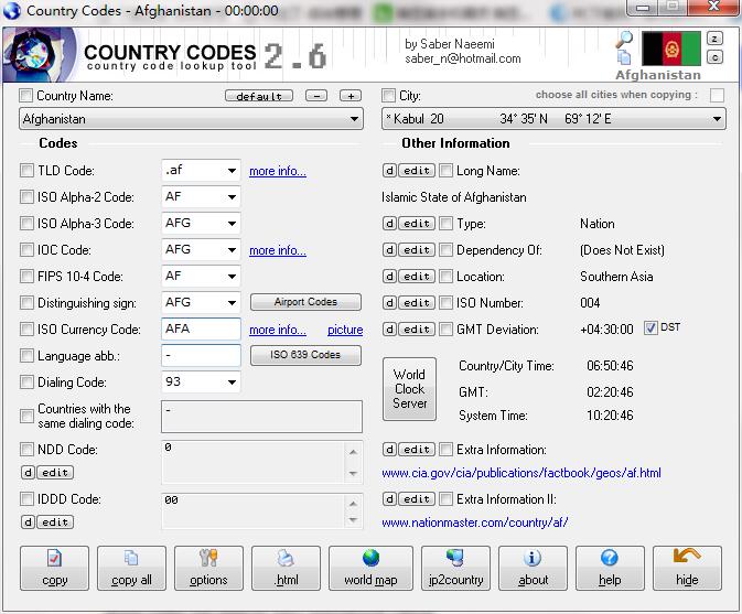 Country Codes軟件提供復(fù)選框,允許您將所有或僅選定的信息復(fù)制到剪貼板。此外,它還為每個啟動瀏覽器的國家提供了一個方便的鏈接,其中包含來自中央情報局世界概況手冊和NationMaster網(wǎng)站的詳細信息。它還提供了一些選項,例如導(dǎo)出到HTML文件以供打印或其他用途。