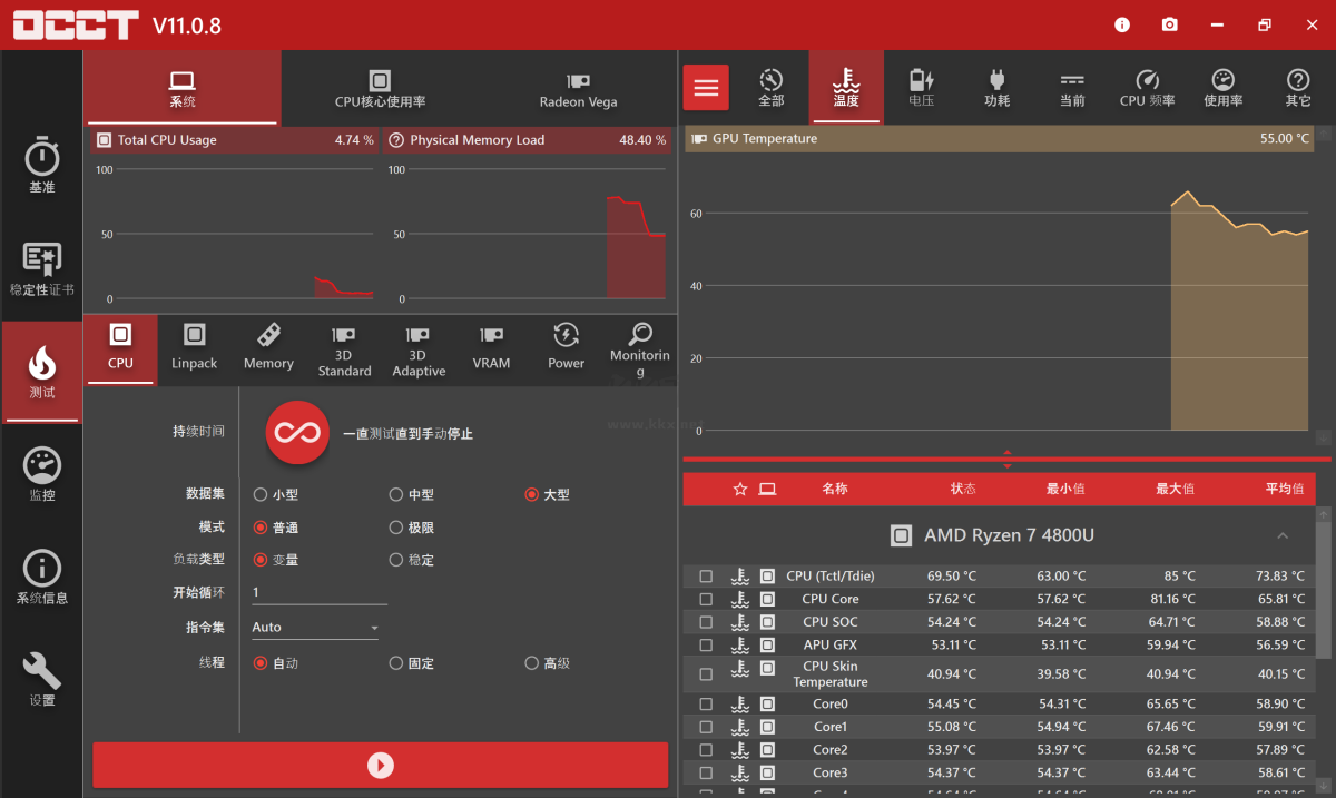 OCCT電源檢測軟件特色