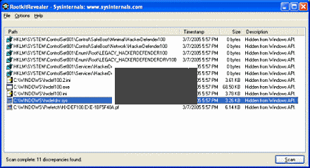RootkitRevealer會將Rootkit操縱Windows API或本機API從目錄列表中刪除它們的存在