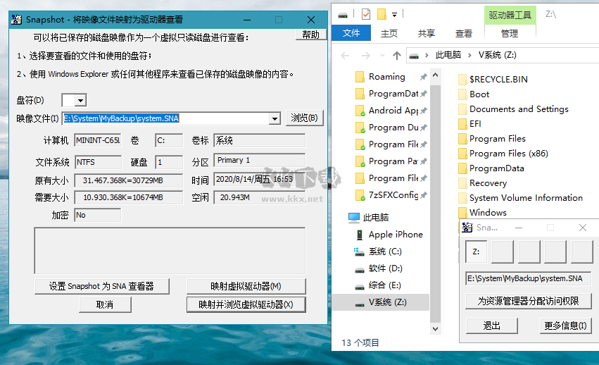 Drive Snapshot通過建立一個虛擬磁盤,將鏡像掛載到磁盤上,你可以任意的使用、比較、還原鏡像內(nèi)的文件