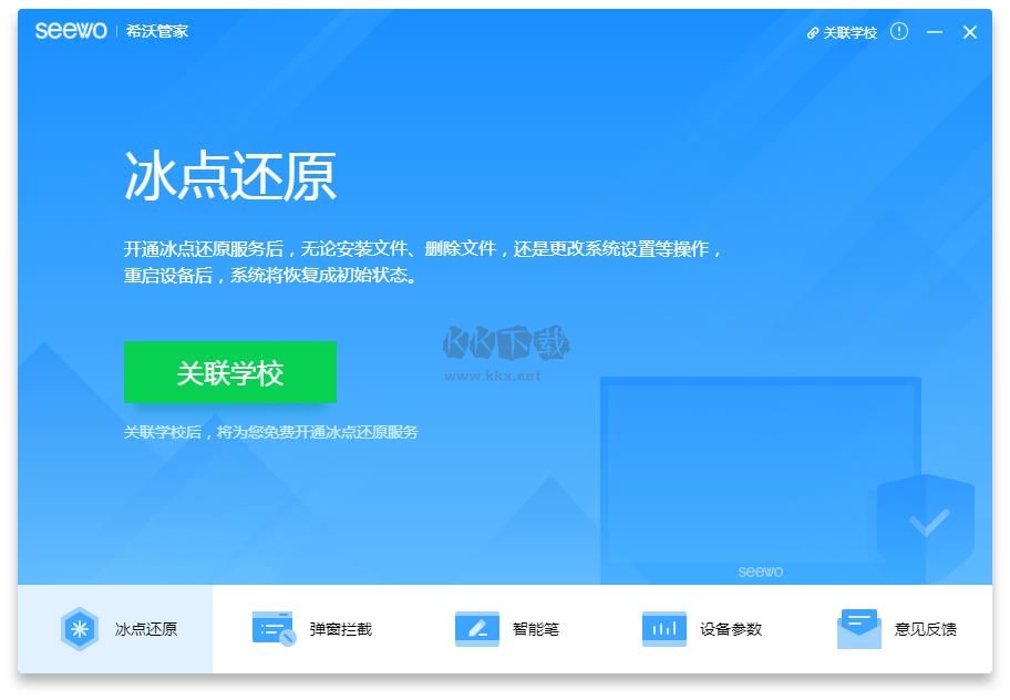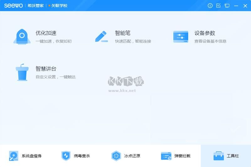 希沃管家最新版是一款簡單易用的系統(tǒng)安全管理軟件,用戶們可以在希沃管家最新版快捷的進行系統(tǒng)安全的保護,支持用戶們在線一鍵啟動冰點還原功能,可以快捷得到啟動設備,恢復電腦最健康的狀態(tài),可以有效的幫助用戶有效的地域電腦的病毒防止惡意程序的入侵,感興趣的用戶快來KK下載體驗吧~